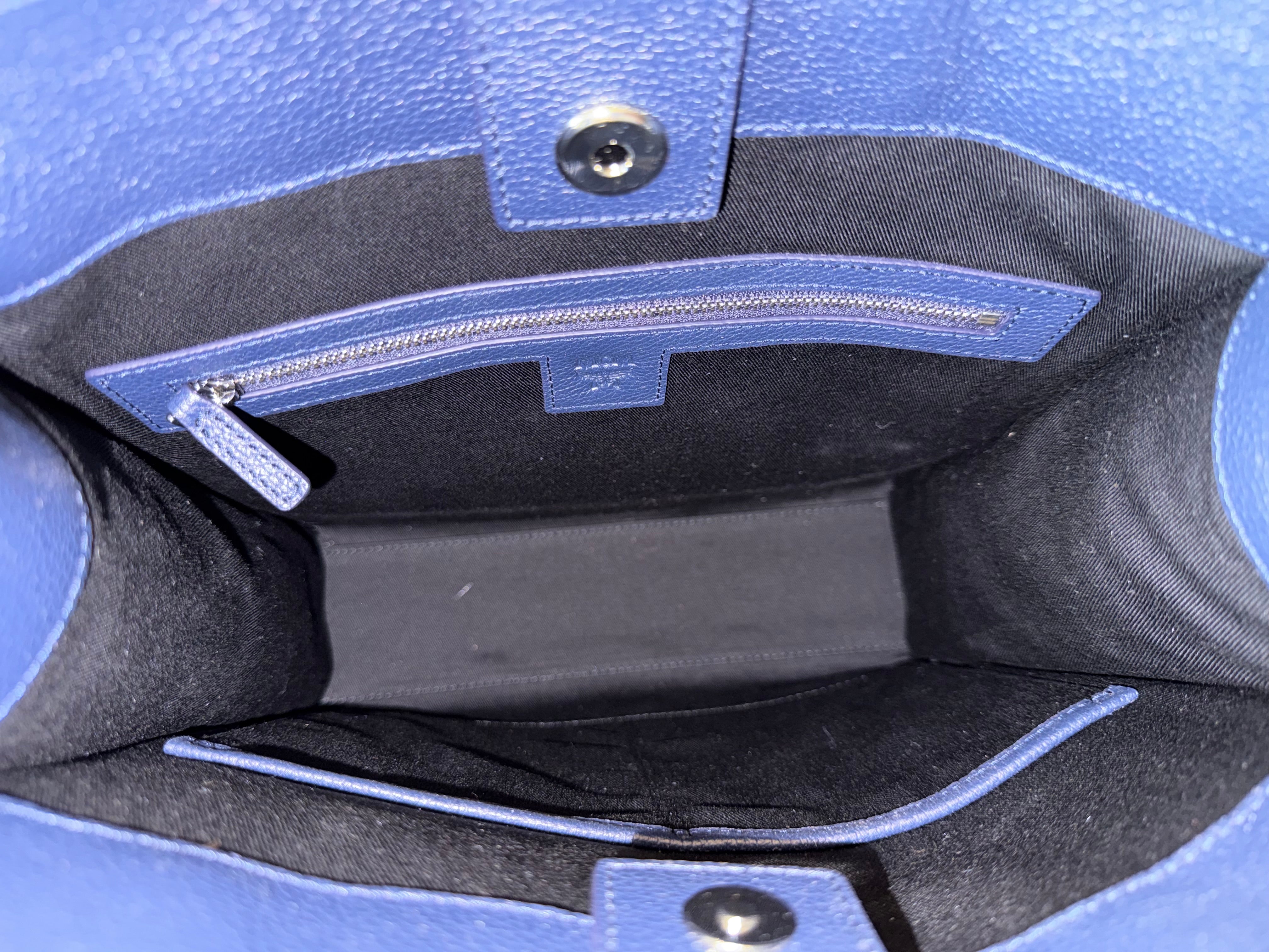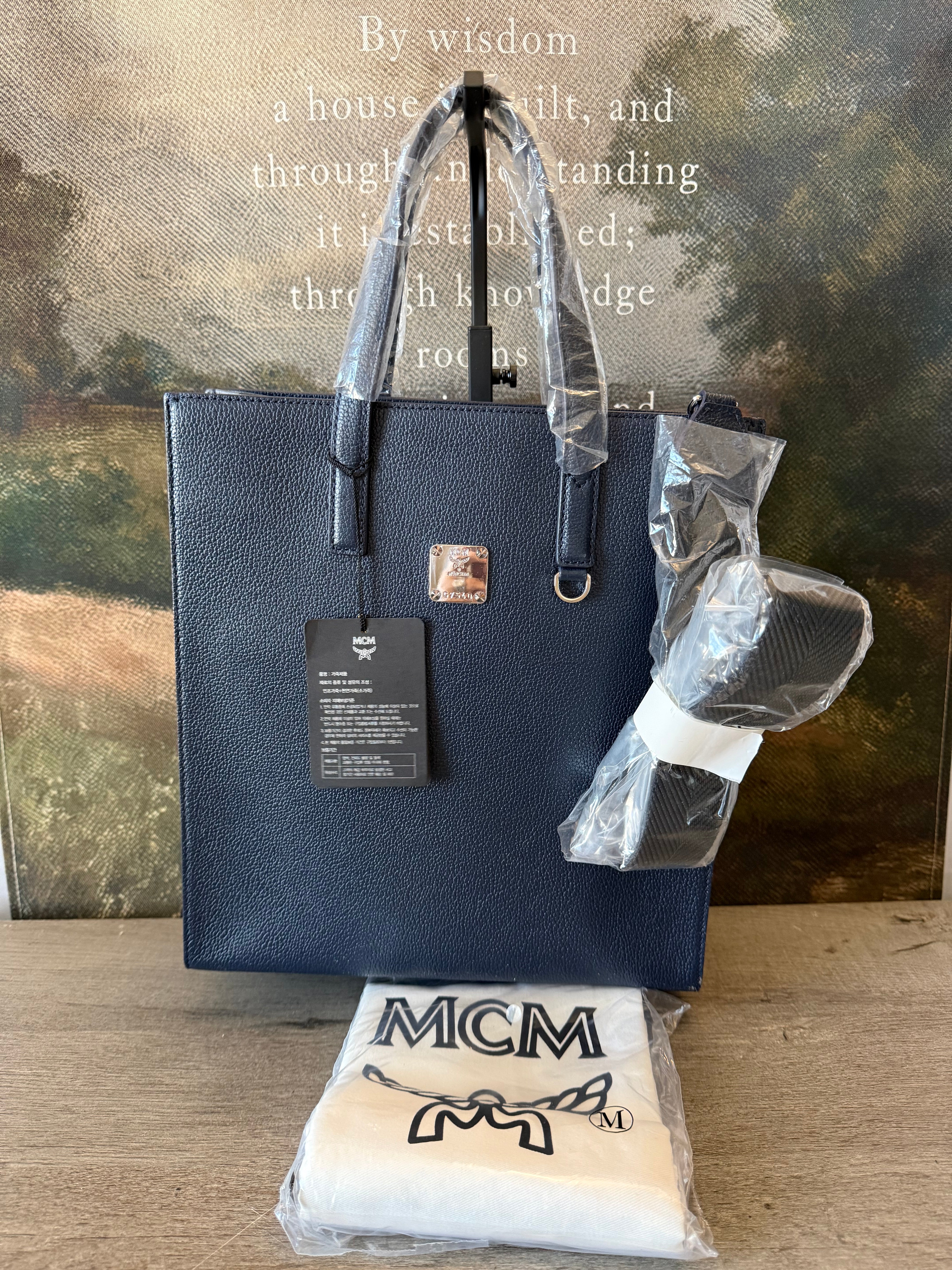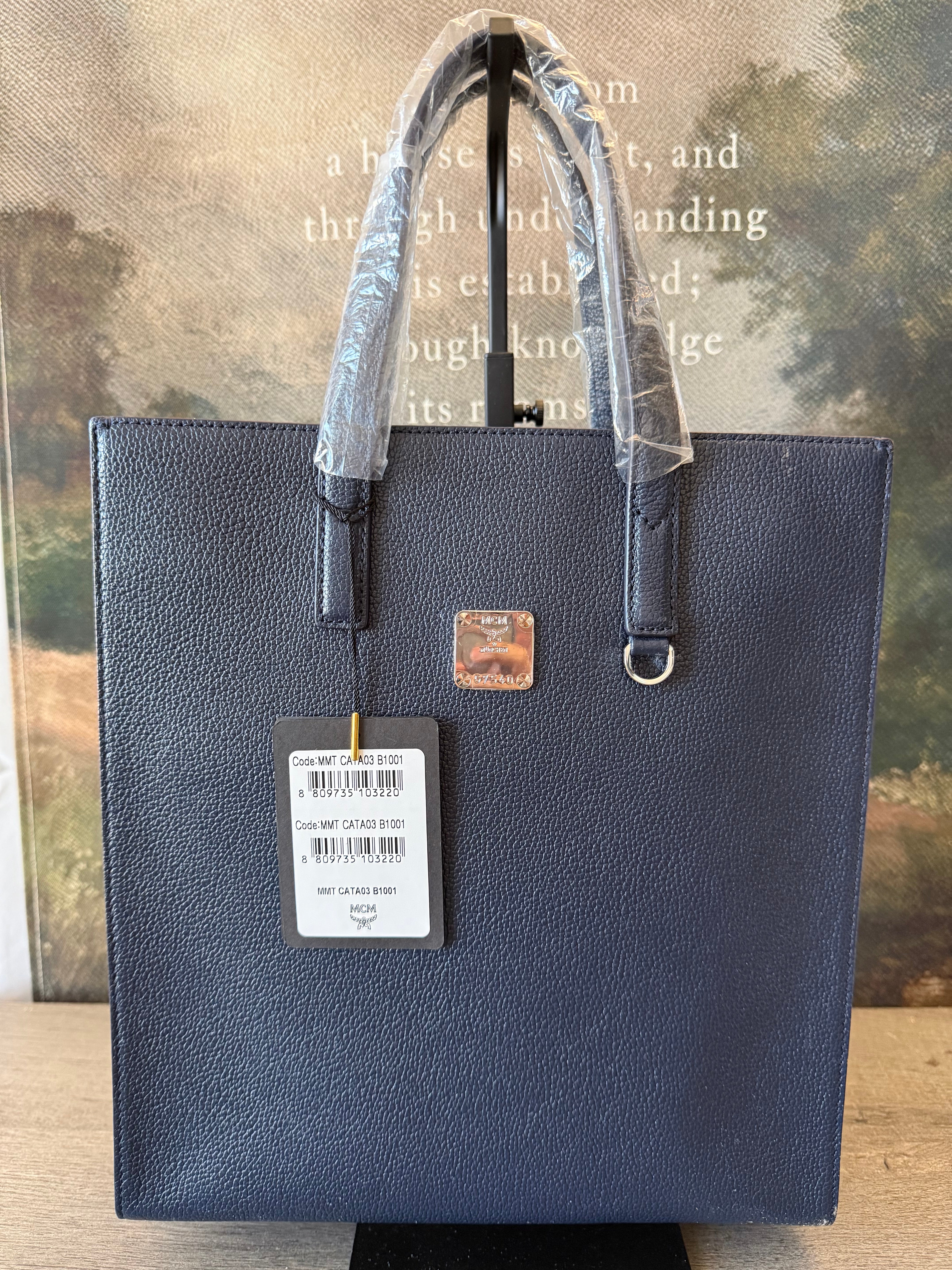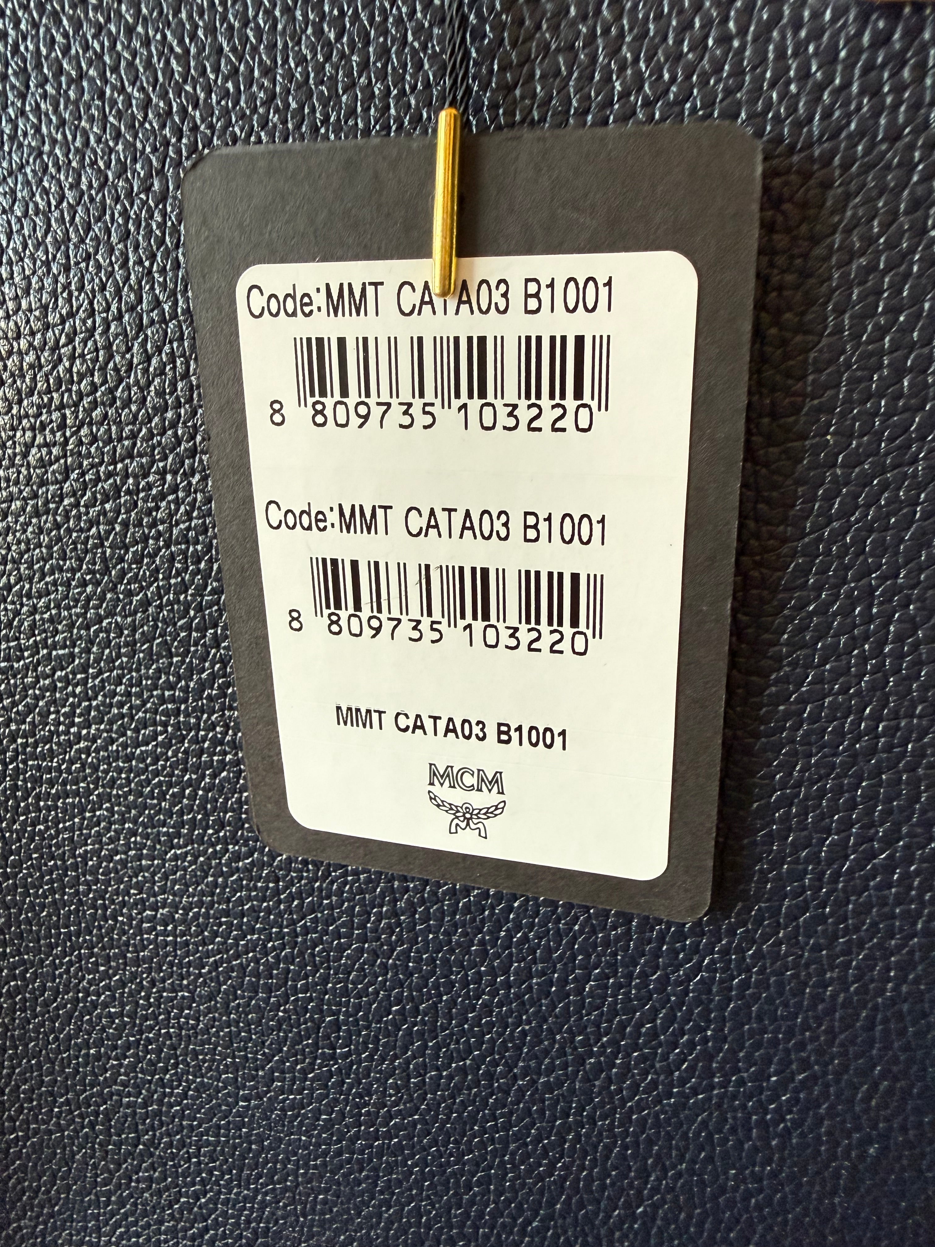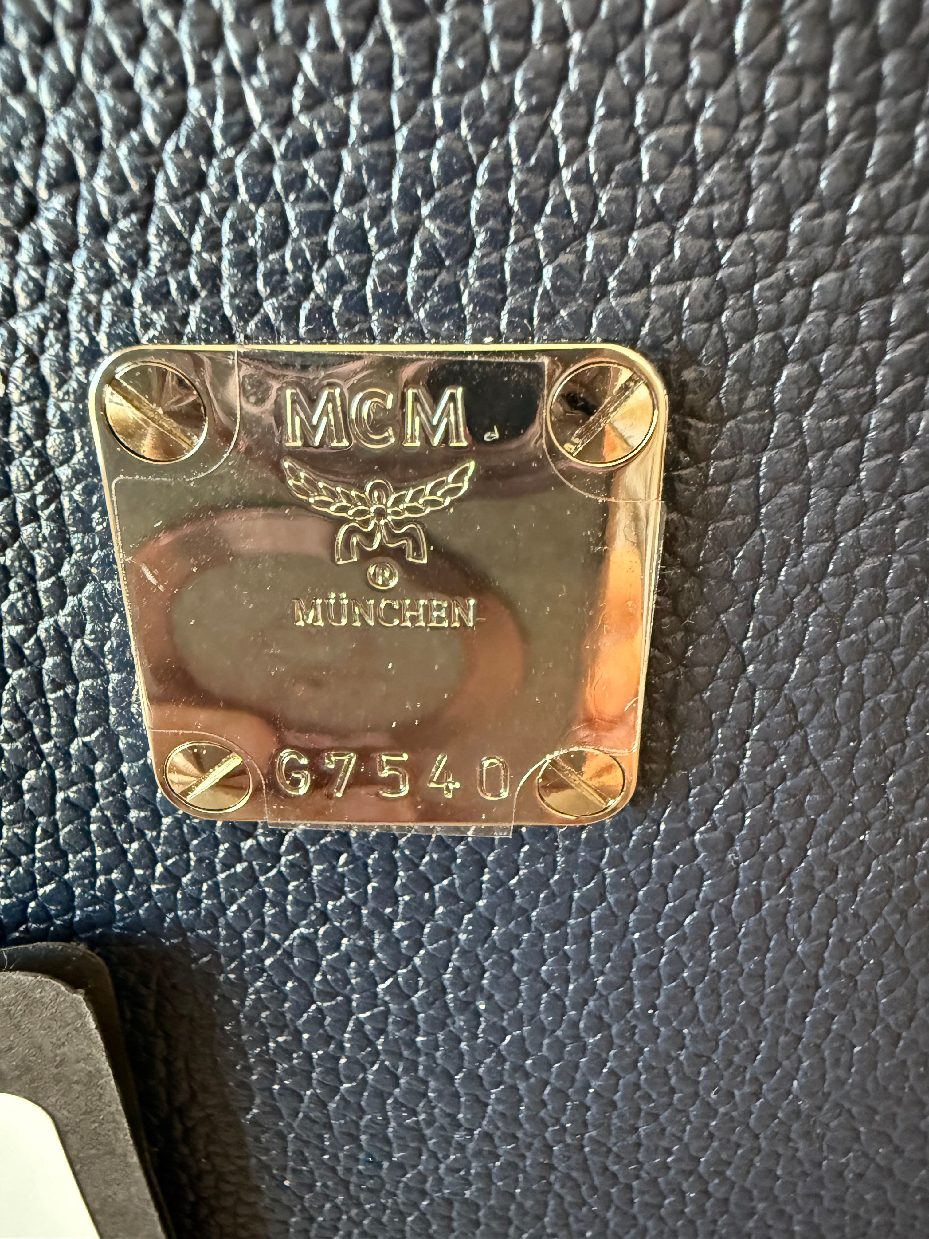 MCM Navy Leather Structured Tote NWT w/ Strap & Dust Bag – Gold Plate Logo